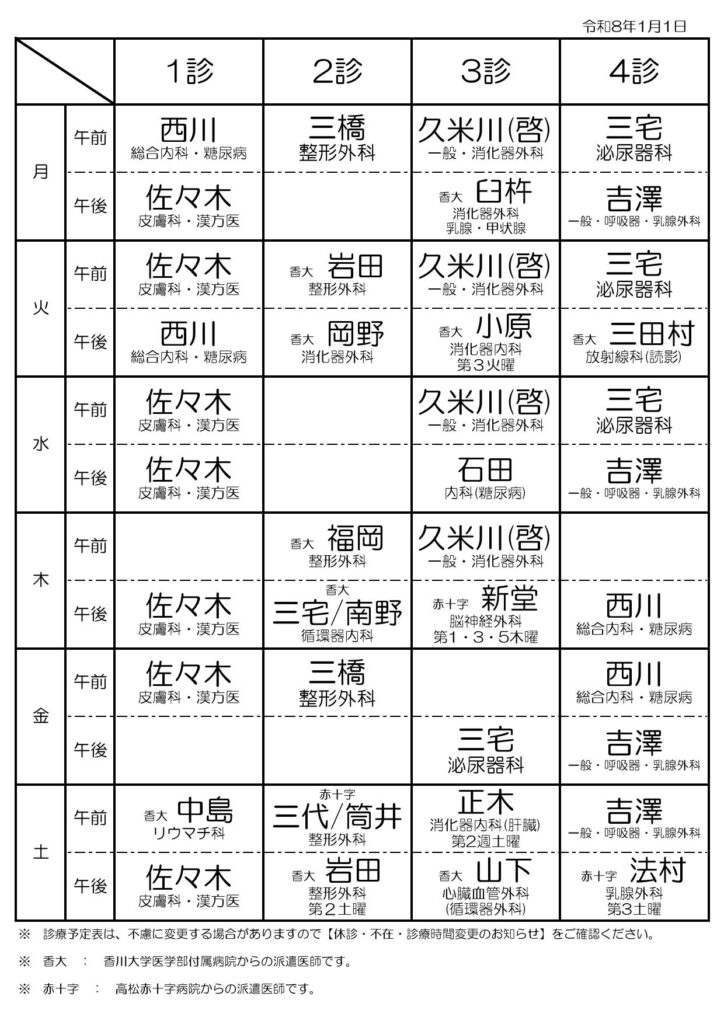 | 総合診療・ 一般外科 | 久米川 | 吉澤 | 久米川 | 久米川 | 吉澤 | 久米川 | 吉澤 | 吉澤 | ||||